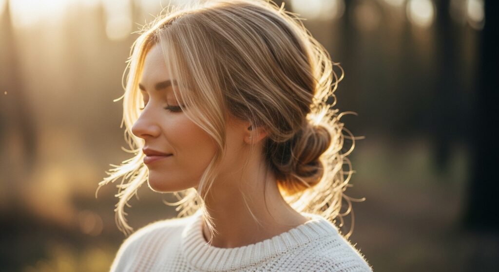 For a more effortless, quiet luxury feel, go low. This style is softer and works beautifully with day-old hair for a bit of natural texture.