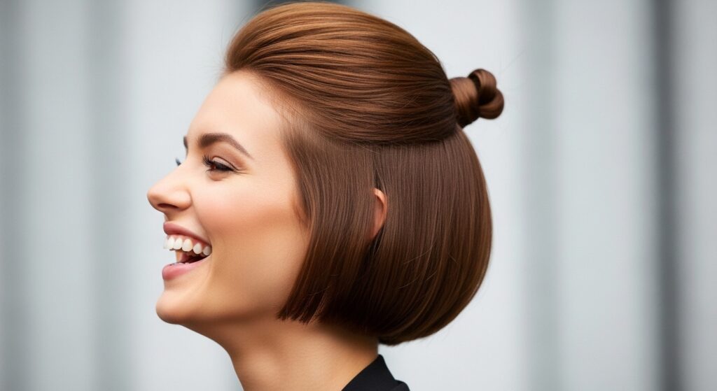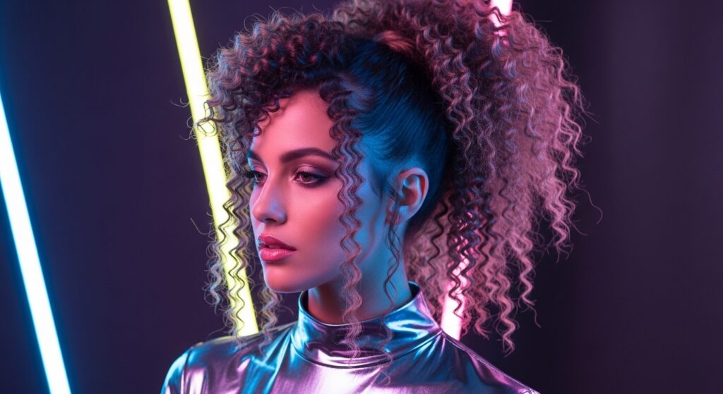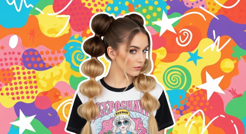 Split your hair down the middle. On each side, create a bubble ponytail that ends in a space bun. It’s fun, futuristic, and full of personality.