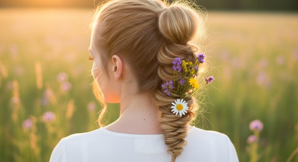 Create your bubble ponytail, but for the final section, instead of making a bubble, fishtail braid the ends. It gives a beautiful, textured, and bohemian finish.