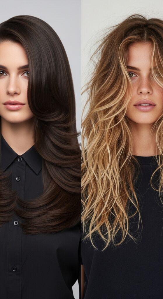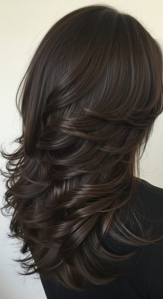 The goal is softness and motion. The layers start around your cheekbone or jaw, framing your face, and continue down the length of your hair. This technique removes weight without sacrificing length, giving you that dreamy, waterfall-like silhouette that’s full of life.