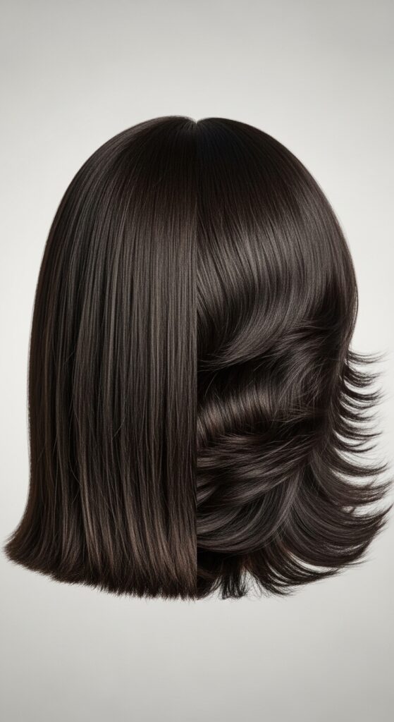 Think the cascading step is only for long hair? Not at all. This technique is the secret behind the “quiet luxury bob” and asymmetrical lob you’re seeing everywhere.