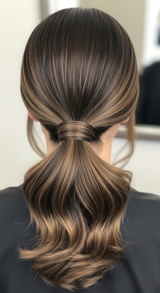 For a high pony, tease the crown slightly for volume. The layers will create a soft, feathery tail instead of a blunt one. Wrap a small piece of hair around the elastic to hide it for an extra-polished look.