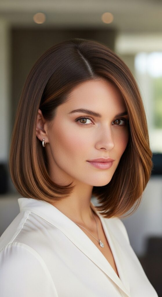 It aligns with the “glitchy glam hair” trend—something beautiful but slightly undone, polished but not stiff. It’s a timeless cut that feels completely next-year, especially when paired with face-framing pieces or curtain bangs.