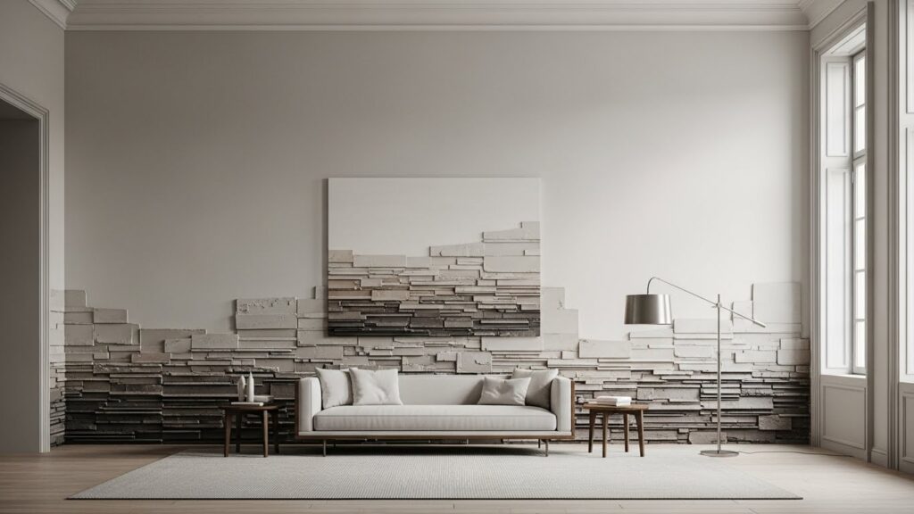 Layered Material Applications: This involves applying materials in bands or gradients. Examples include stacked stone or tile that becomes more rugged near the floor, wooden slat walls with varying densities, or plaster applied with different techniques from ceiling to floor. The key is a deliberate, visible progression.