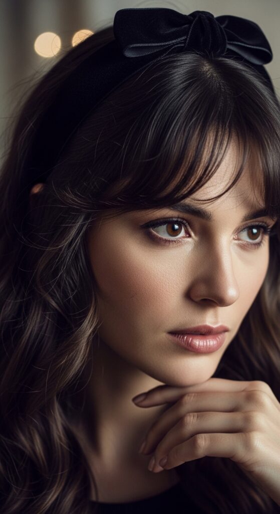 Think velvet ribbons, dark clips, and intricate, looser braids. It’s a beautiful way to style growing bangs with a ton of attitude and romance, far from an awkward phase.