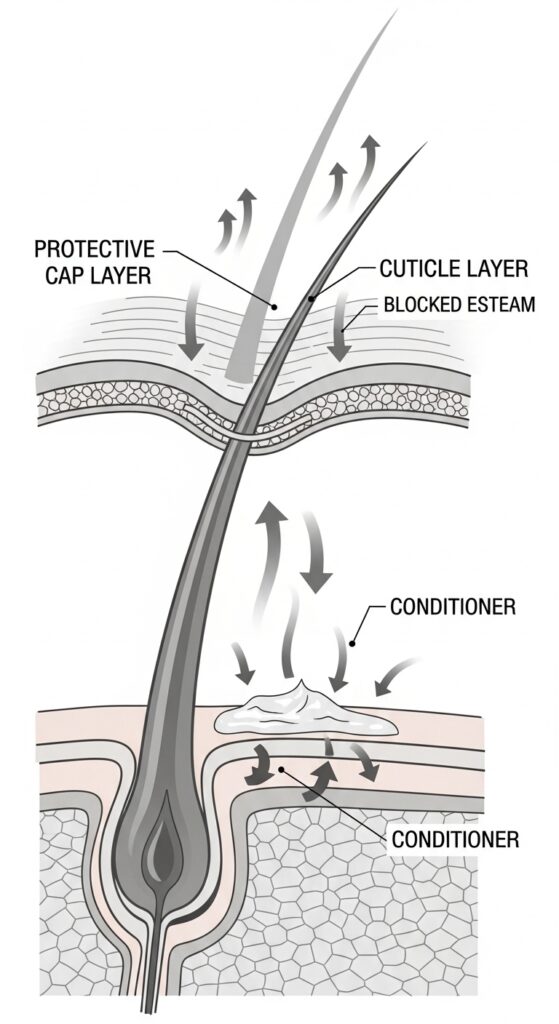 A liner creates a barrier. Your style stays dry, safe, and perfectly intact on the inside, while the conditioner and heat penetrate only the hair underneath. It’s the difference between starting over and stepping out of the shower ready to go.