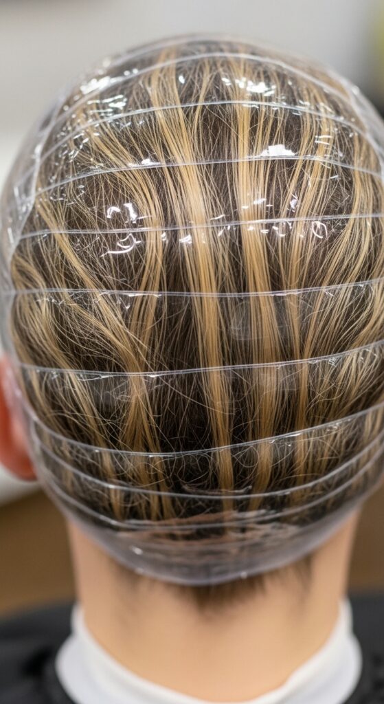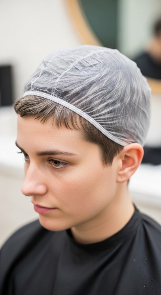 Short hair girls, this is for you too! It can be tricky to cap short hair. Use a smaller liner or even a plastic processing cap from a salon supply store. The key is still the same: seal out moisture.