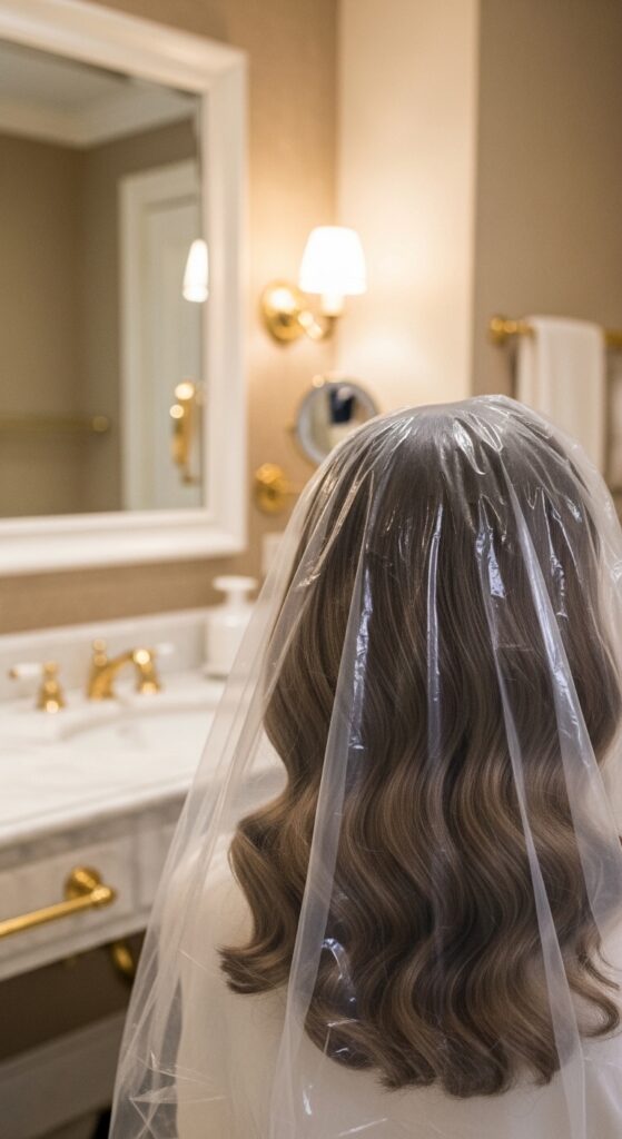 Those free hotel shower caps? They’re perfect liners! I always pack a couple when I travel. They take up zero space and let me do a deep treatment in any hotel bathroom without risking my vacation style.
