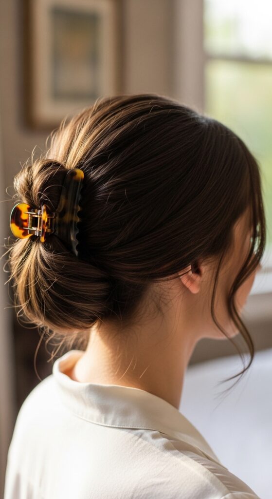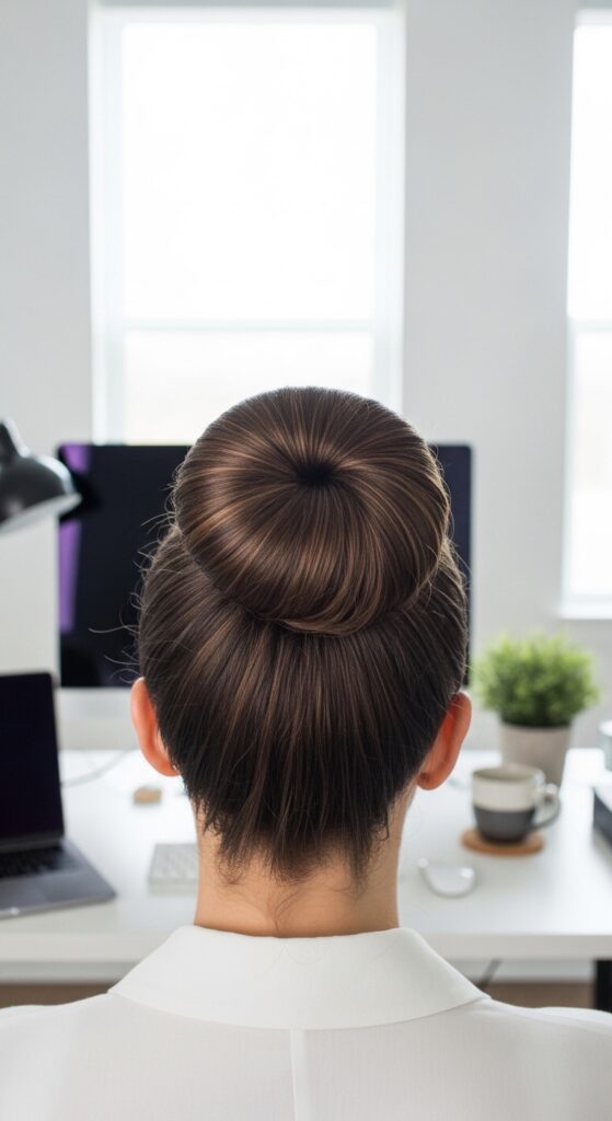 This creates a flawless, round bun that’s perfect for mimicking that sleek quiet luxury bob updo look, even if you have long hair. It’s incredibly secure for all-day wear.