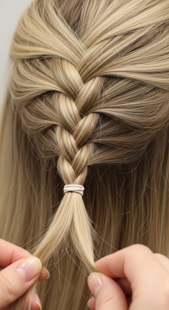 - Secure the end of the braid with a small, clear elastic.