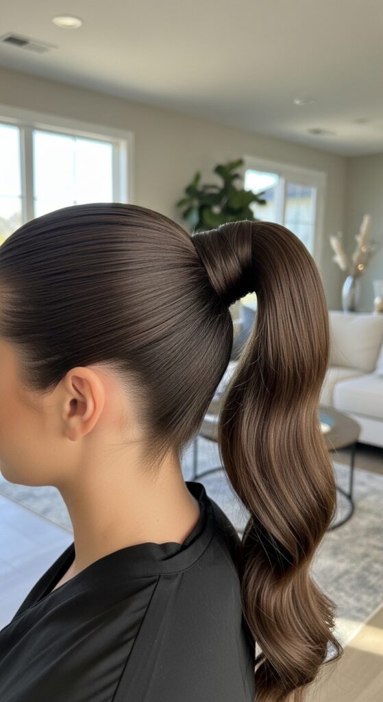 It’s perfect for achieving that “quiet luxury” ponytail look you see everywhere, but with ultimate security. You’ll need two thin, strong hair elastics and a few bobby pins.