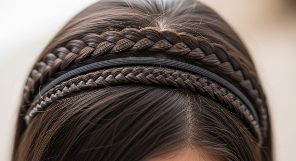 The headband acts as a permanent anchor, giving the braid something to grip onto beyond just your hair. It completely eliminates sliding and takes all the weight off your roots. It’s great for a hime cut with long front sections.