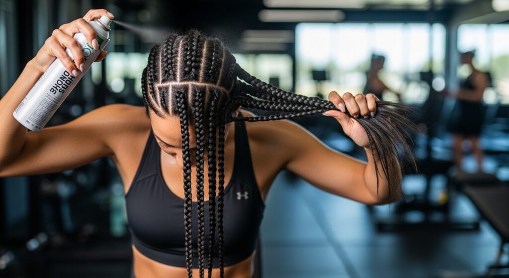 Don’t just use dry shampoo before—use it as a shield during your workout. Applying it to key areas creates a barrier against moisture. It absorbs sweat before it can saturate your braid and ruin its shape.