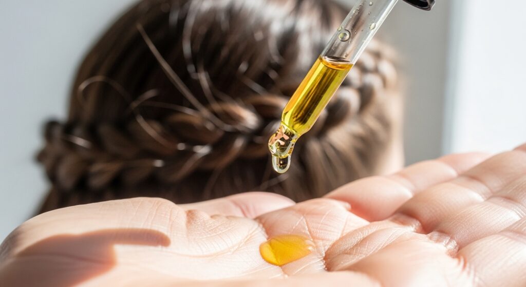 Post-workout, your braids might have a few flyaways from friction. A heavy product will weigh it down. Instead, use a single drop of lightweight hair oil on your palms.
