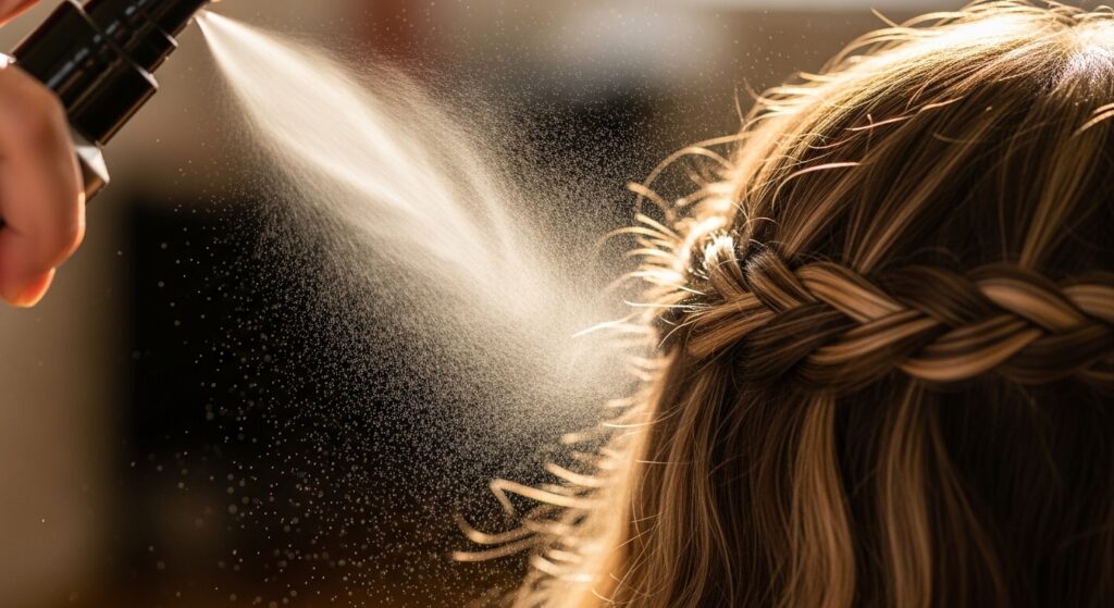 These sprays add a slight grit and roughness to each strand. Think of it like giving your hair tiny little hands to hold onto its neighbors with. It makes the braid structure inherently tighter and more resistant to moisture.