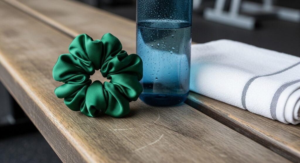 After you conquer your session, how you secure your hair matters. Swap to a silk or satin scrunchie for the ride home or your cooldown. These materials cause less friction and breakage than cotton.