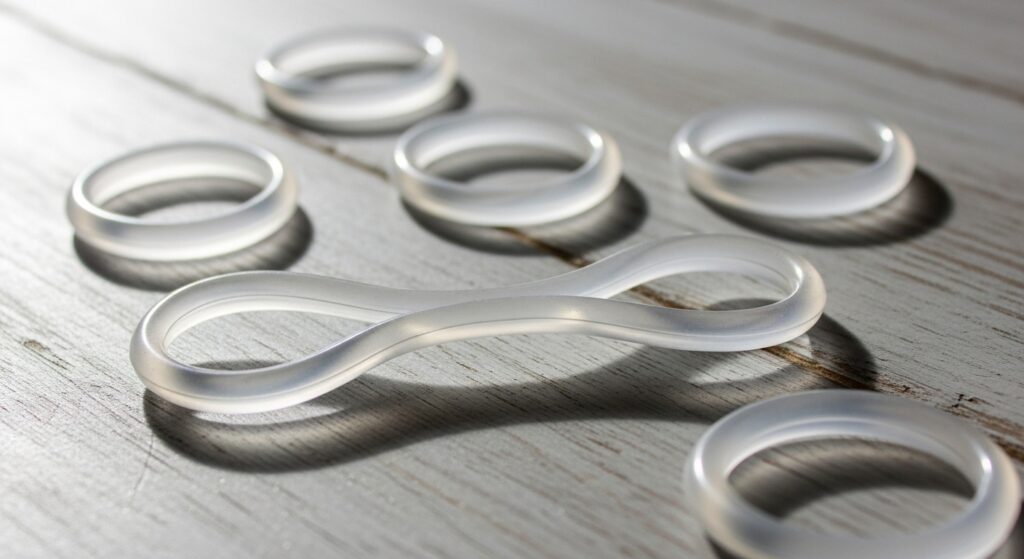 Look for clear elastics with a silicone or rubberized coating. They cling to the hair without snagging, creating a much firmer hold than fabric, which can get slick with sweat. They’re also less likely to leave a deep dent.