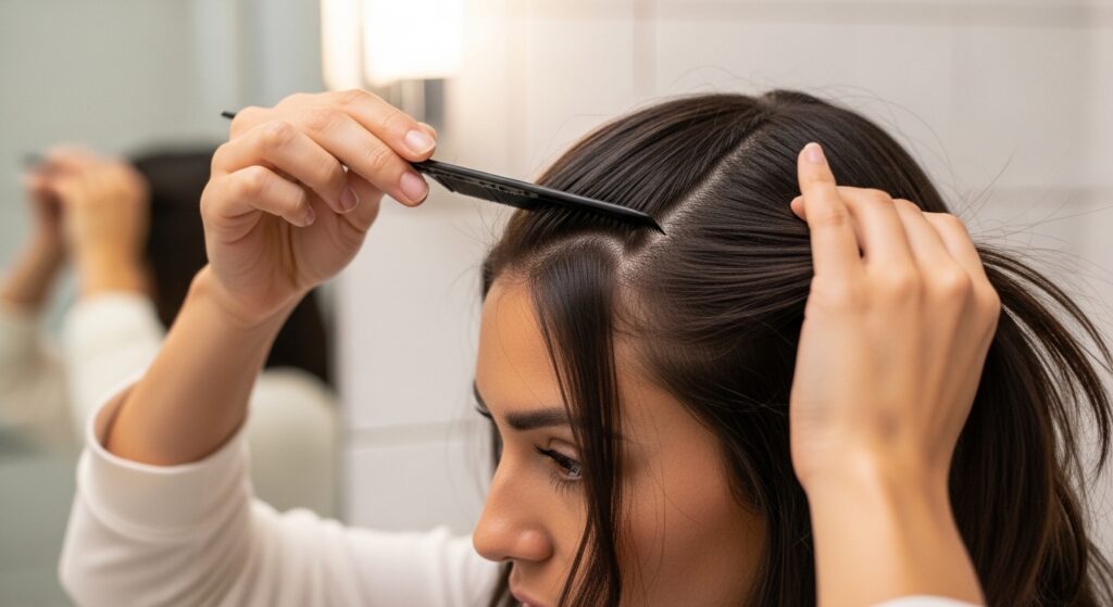 Think of it like an invisible sweatband for your hair. Focus on your hairline, part, and the nape of your neck. These are the sweat zones that will compromise your style fastest.