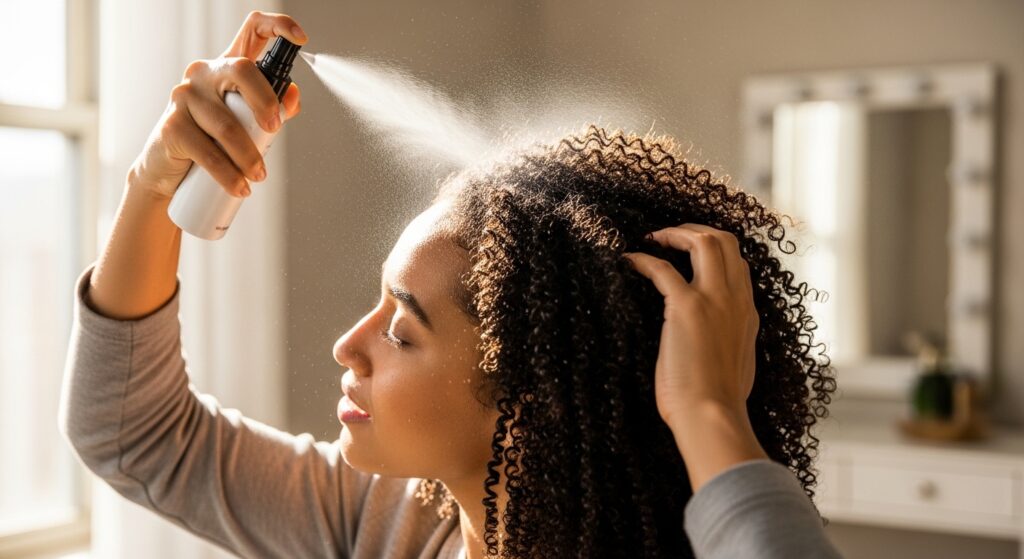 - Mist it lightly on damp or dry hair before you start sectioning.
