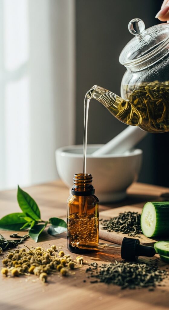 Brewed, cooled green tea is packed with antioxidants that can help create a healthier scalp environment. A healthy scalp is the foundation for thicker hair.
