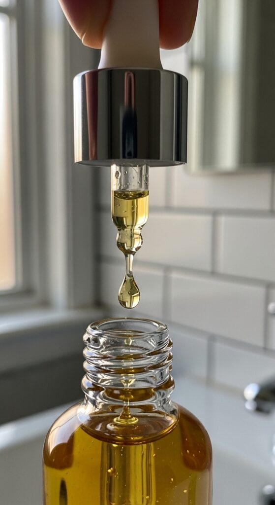 Mix one dropper of serum with 4-5 drops of vegetable glycerin. Apply sparingly to mid-lengths and ends. This helps seal the cuticle and lock in the thickening benefits.