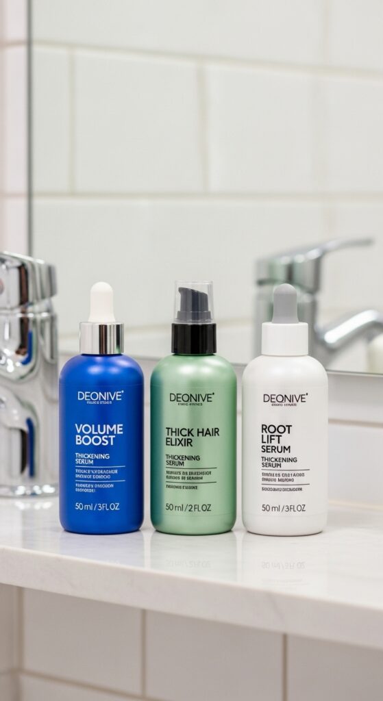 You don’t need a $100 serum for these hacks to work. Many drugstore options are fantastic. Look for keywords like “densifying,” “thickening,” or “volumizing” on the label.