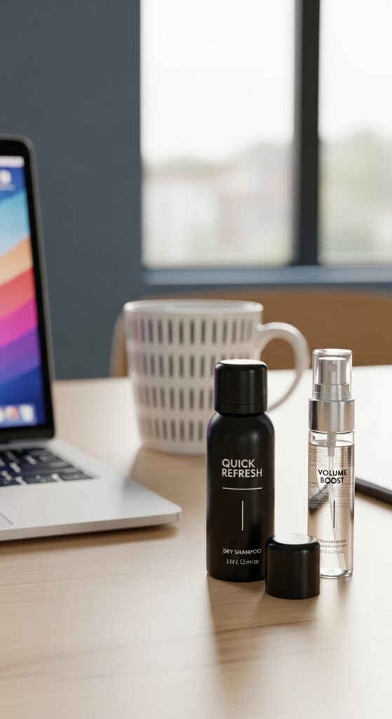 Your best defense is a great offense. Stash a travel-sized dry shampoo and a texturizing spray in your desk drawer. I’m talking the tiny ones that are practically invisible.