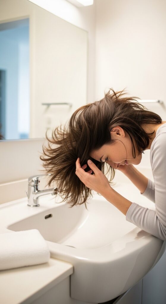 Now, don’t just leave it! Wait 30 seconds for it to absorb. Then, using the pads of your fingers (not your nails), gently massage your scalp in small circles. This distributes the product and lifts the hair at the root.