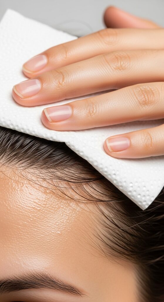 Then, and only then, lightly pat or press your fingertips onto the oiliest spots at your roots. Do not rub. It’s a quick fix to absorb extreme oil before a meeting.