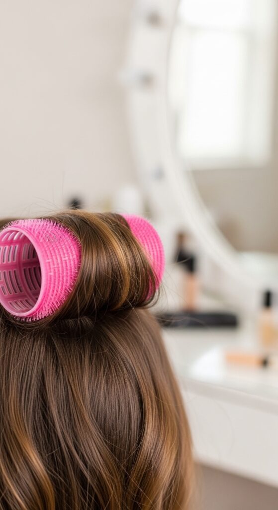 For a five-minute miracle, use a large Velcro roller. After styling, while your hair is still warm, roll the hair at the very top of your crown forward, secure it, and let it cool.