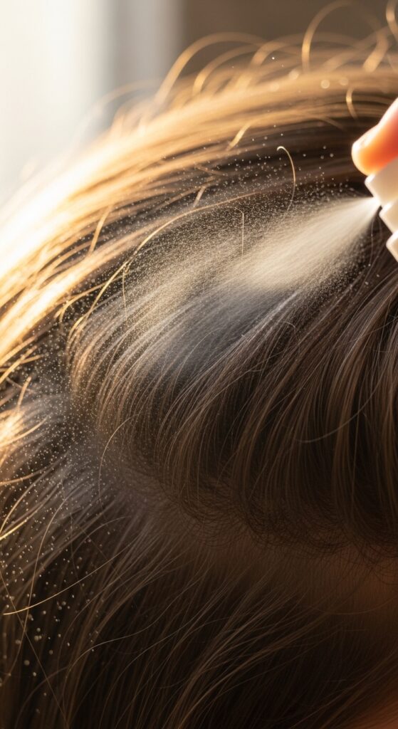 Dry shampoo isn’t just for oil. Sprayed at the roots on clean, dry hair, it adds grit and texture that gives your hair more “grip.”