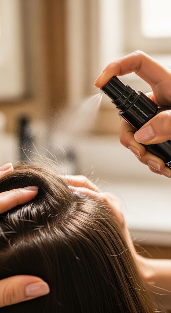 Lift the sections and spray directly at the roots, then massage it in. This gives targeted support exactly where you need lift, without making the rest of your hair crunchy or stiff.