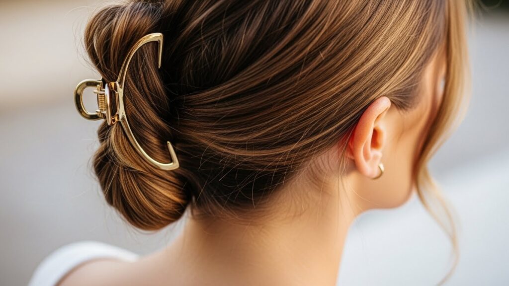 Sometimes, the perfect pairing isn’t just a hairstyle—it’s a hairstyle plus a simple accessory. When wearing minimal makeup, a well-chosen hair accessory can add that final touch of intention without overwhelming your face. Think a simple gold claw clip holding a low twist, a delicate silk scarf tied around a ponytail, or minimalist barrettes pinning back one side.
