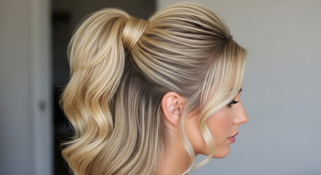 Bringing back a fun retro vibe, the bubble half-up ponytail is playful, eye-catching, and surprisingly easy. It’s a fantastic way to add a fashion-forward element to your look.