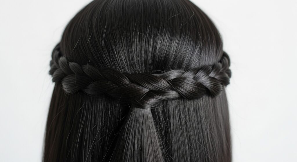 How to achieve it: Take two small sections of hair from the front, one on each side. Twist each section away from your face (so the twist goes backwards). Bring these two twisted sections to the back of your head, crossing them over each other. Use bobby pins that match your hair color to secure them in an “X” formation, tucking the pins vertically into the twist for a discreet hold. This creates an elegant, almost architectural detail that holds surprisingly well.