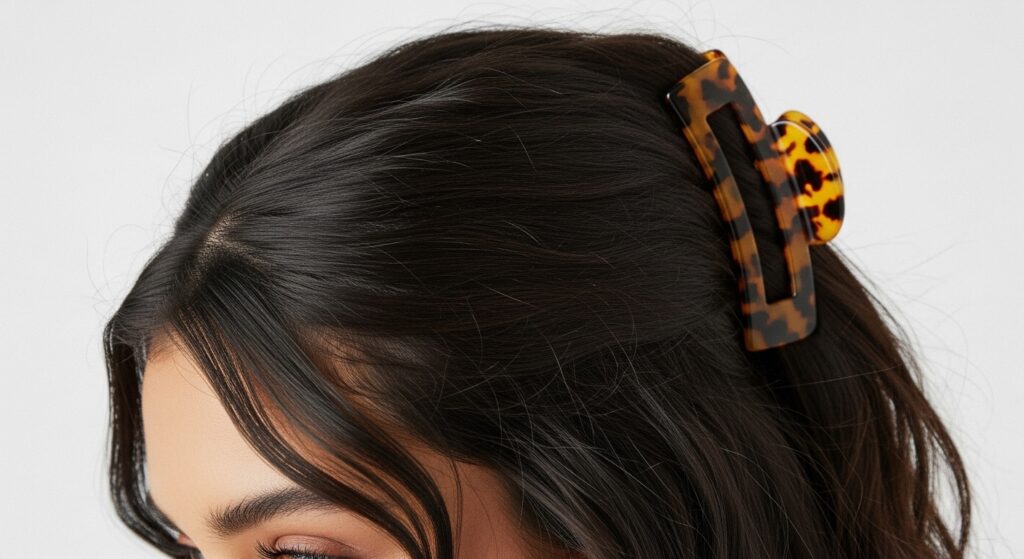 How to achieve it: Create a basic half-up ponytail, but instead of a simple elastic, use a statement piece. A large, decorative claw clip can hold the section with panache. A silk scarf tied around the base of the ponytail adds a pop of color and texture. Or, use a beautiful, embellished hairpin or comb to secure the section, placing it diagonally for a more interesting angle.