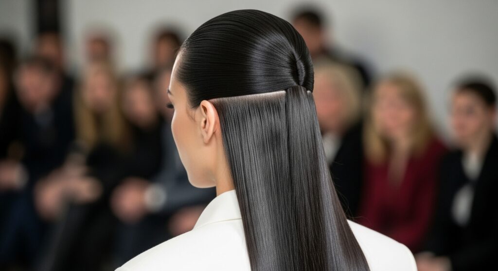 For a polished, office-appropriate or black-tie-ready style, the sleek half-up is unmatched. It exudes control and sophistication.
