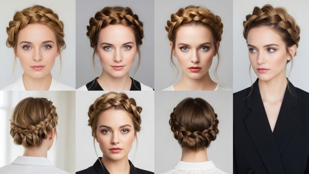 If You Have Shorter Hair or Layers: Don’t be discouraged! Use more pins and smaller, tighter braids. You can also create a “half-halo” that wraps around just the front of your head, leaving the back in a chic ponytail or bun. Texturizing spray is your best friend for gripping shorter pieces.