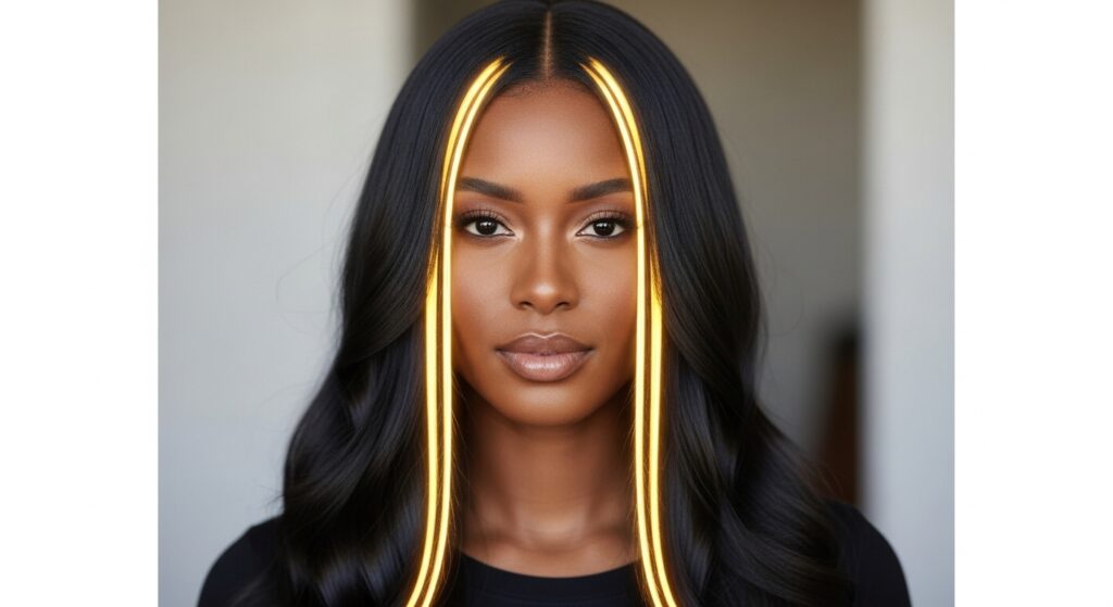 Glitchy glam hair is all about intentional, artistic “imperfection.” For face-framing, this means placing highlights in unexpected, broken-up patterns. Maybe a highlight skips a section, or is placed vertically instead of horizontally.