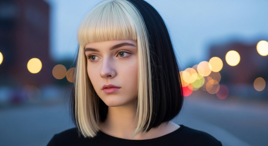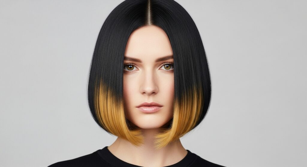 It’s playful, modern, and keeps the overall look dark and rich while adding a spark of light where it matters most. Perfect for a chin-length bob.