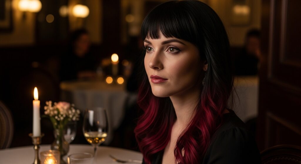 Balayage isn’t just for blondes. This romantic goth take uses deep, rich colors. Imagine a black base with face-framing pieces in burgundy, deep violet, or blood red.