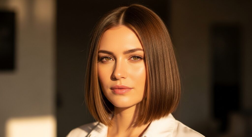 - Ask for: “A subtle, neutral-toned balayage on a blunt bob, just brighter around the face.”