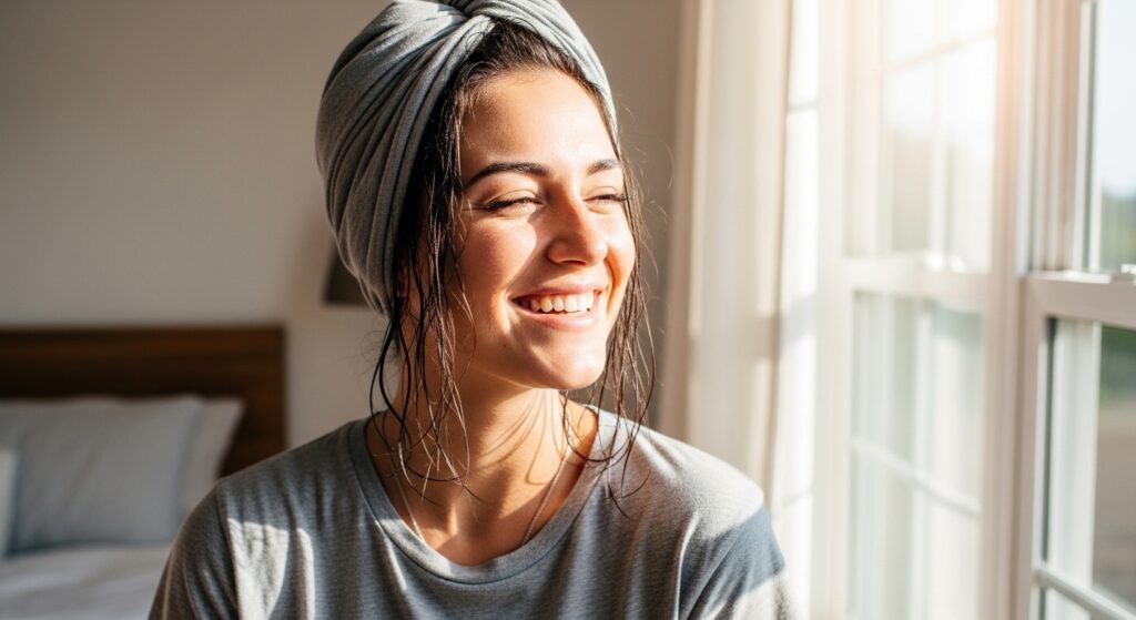 Before we even get to curling, we need to talk about your hair’s foundation. A regular terry cloth towel is actually too rough for curly hair—it causes frizz and breaks up your natural wave pattern before you even start. The solution is probably in your dresser drawer.