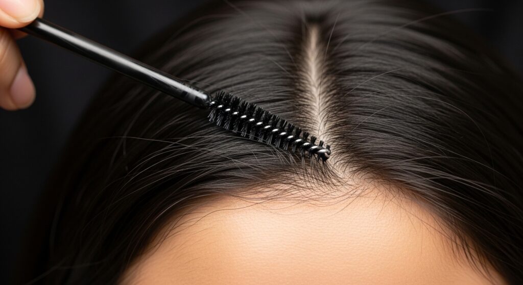 - Take a wide-tooth comb or a tail comb and gently comb only the roots of your hair, smoothing them flat against your head.