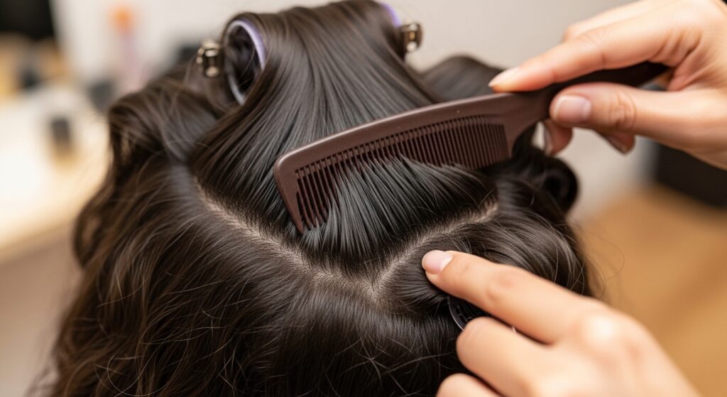 - Once your set hair is about 80% dry, carefully remove the rollers or pins.