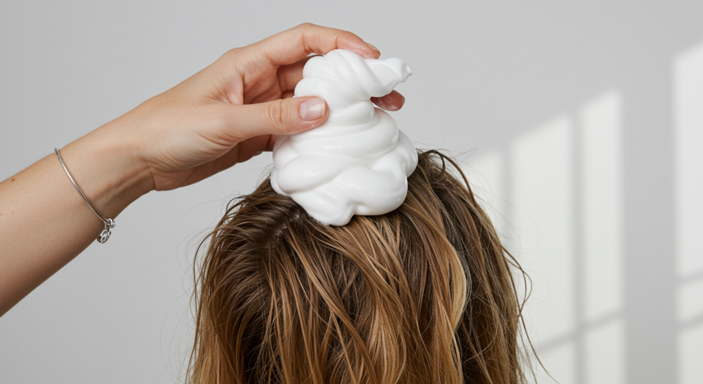 Styling products like mousse or root-lifting sprays are designed to add body. Apply a golf-ball-sized amount of mousse to damp hair before blow-drying, or spritz a root booster directly at the crown for targeted lift.