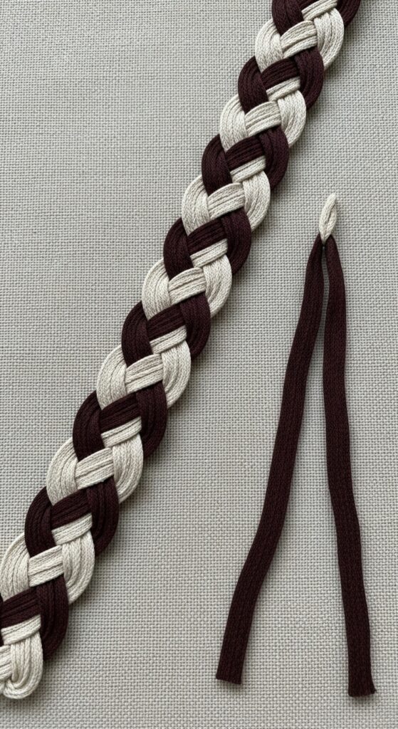 Your hands should feel the same amount of resistance from each strand. If one piece feels looser, tighten it before you cross it over. Consistent, firm side-pulling tension is your secret weapon for a sleek finish.