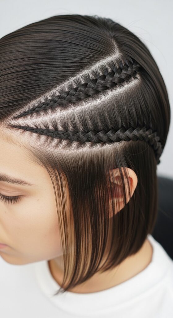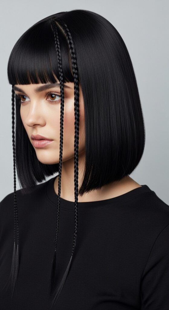 If you rock a sharp, blunt vampire haircut, flat, tight braids are your best accent. Think small cornrows or flat twists along the hairline. The contrast between the blunt cut and the intricate, flat braid is stunning.