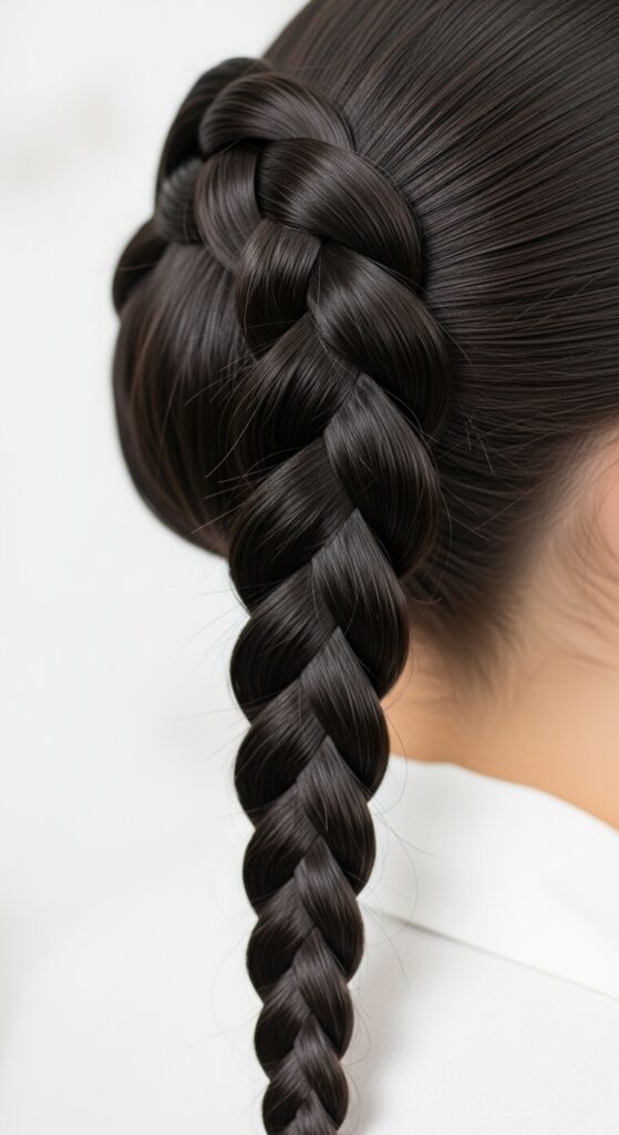 Then, when you unclip the top section and incorporate it, you’re just adding a sleek layer over an already stable base. This prevents the braid from becoming one giant, puffy column and gives it a flatter, more elegant look against your head.