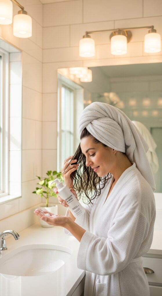 Everything starts in the shower. For sleek braids, you need smooth, hydrated hair that’s easy to manage. Skip heavy, creamy shampoos that can weigh hair down and opt for a clarifying or volumizing one instead.